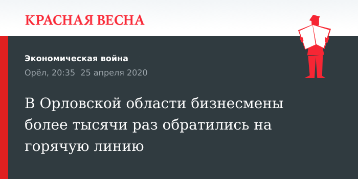 Более 1100 обращений от орловских предпринимателей поступило за неполный месяц на горячую линию по поддержке малого и среднего бизнеса, 25 апреля сообщает пресс-служба правительства Орловской области.
