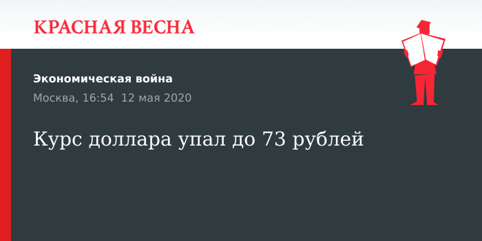 Напомним, ниже 73 рублей за доллар курс обмена опускался 30 апреля. На 12 мая доллар обменивался по курсу около 80 рублей.