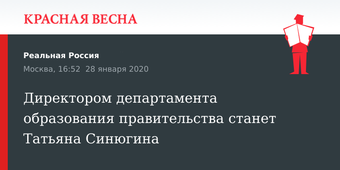 Должность директора департамента просвещения, высшего образования и науки правительства займет нынешний замминистра просвещения РФ Татьяна Синюгина, говорится в документе, опубликованном 28 января на официальном интернет-портале правовой информации.
