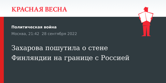 Ироничное замечание по поводу идеи соорудить забор на границе между Финляндией и Россией сделала официальный представитель МИД РФ Мария Захарова 28 сентября.