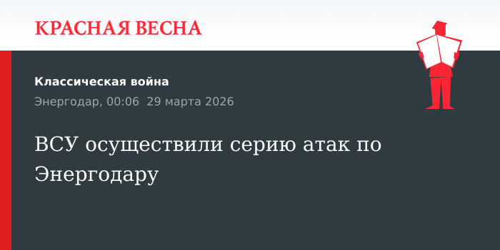 Серию ударов с применением БПЛА нанесли по Энергодару Вооруженные силы Украины, написал глава города Максим Пухов 28 марта в своем Telegram-канале.