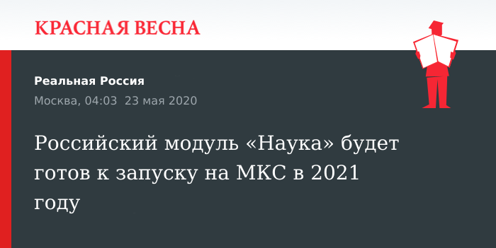 Напомним, как сообщил в начале апреля генеральный директор Роскосмоса Дмитрий Рогозин, запуск модуля был отложен с 2020 на 2021 год в связи с необходимостью устранить замечания, а также из-за необходимости уменьшить количество сотрудников, выходящих на работу в центр Хруничева из-за пандемии коронавируса.