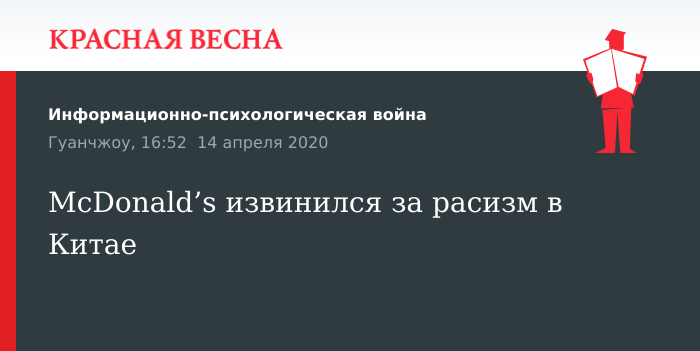 McDonald’s извинился за расизм в Китае