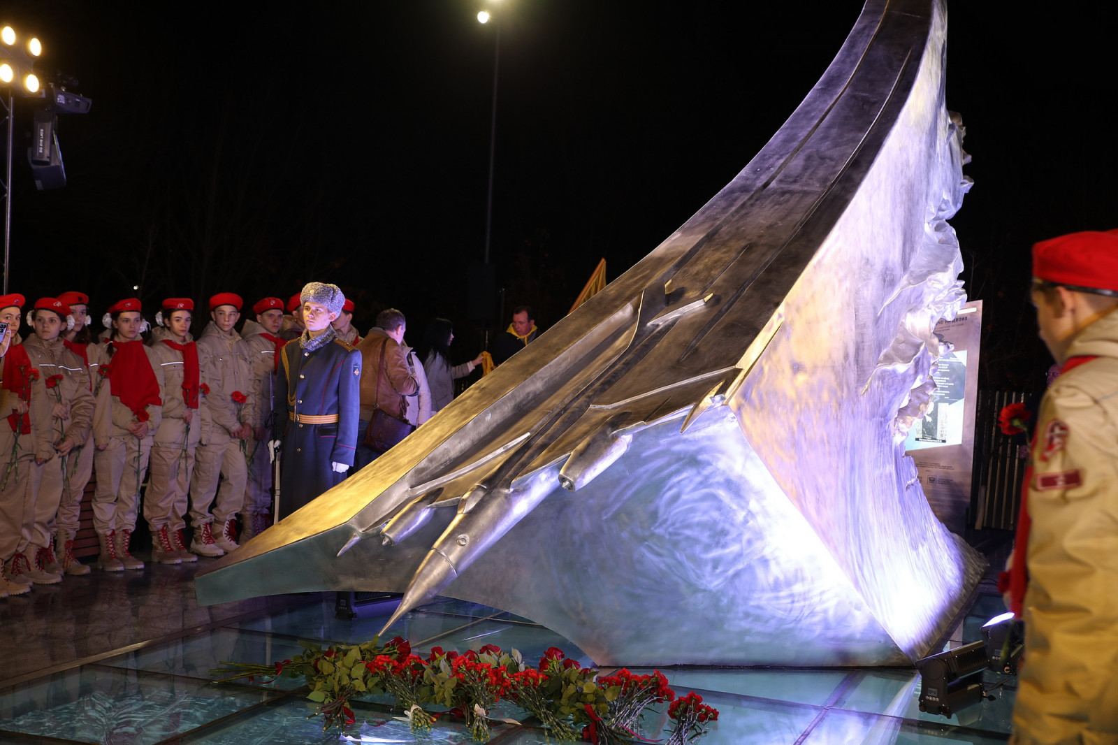 Момент установлен в парке «Дружба». На церемонии открытия присутствовали вдова одного из летчиков — Галина Капустина, помощник президента России Владимир Медынский и губернатор области Василий Голубев.