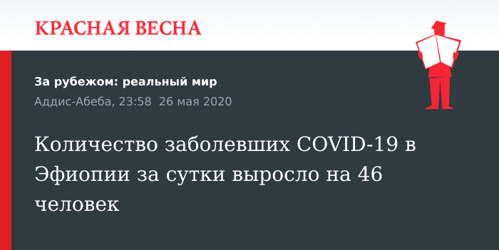 Количество заболевших COVID-19 в Эфиопии за сутки выросло на 46 человек