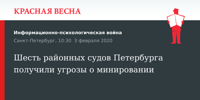 Эвакуация из-за писем с угрозами о минировании проводится в шести районных судах Санкт-Петербурга, 3 февраля сообщает пресс-служба судов города.