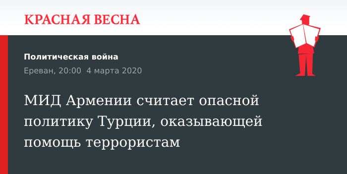 МИД Армении считает опасной политику Турции, оказывающей помощь террористам