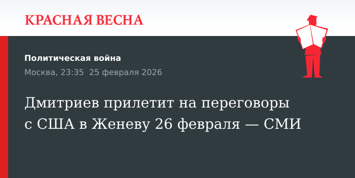 Дмитриев прилетит на переговоры с США в Женеву 26 февраля — СМИ