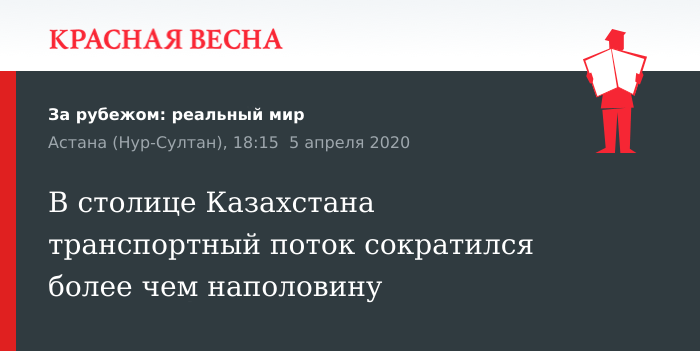 Как сообщало ИА Красная Весна, по состоянию на 5 апреля в Казахстане выявлено 569 случаев заражения, в том числе 219 — в Нур-Султане и 115 — в Алма-Ате.