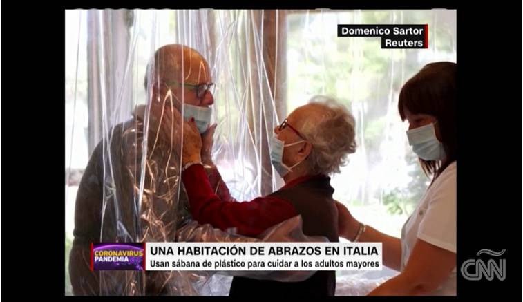 Зал для объятий организован в доме престарелых на севере Италии для того, чтобы посетители учреждения могли обнять своих близких, 12 ноября сообщает CNN Español.