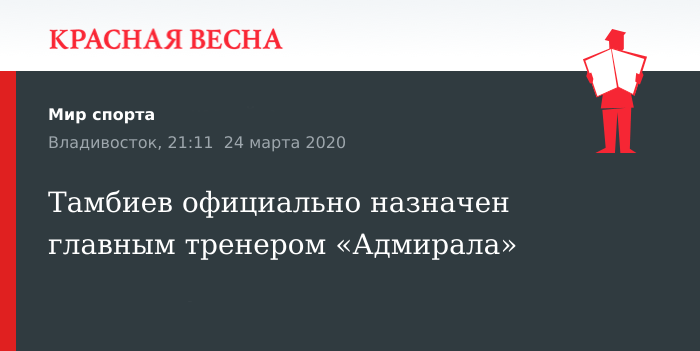 Хоккейный клуб «Адмирал» назначил главным тренером Леонида Тамбиева, 24 марта сообщает пресс-служба владивостокской команды.