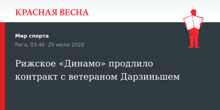 Рижское «Динамо» заключило новый контракт с нападающим Лаурисом Дарзиньшем, 24 июля сообщает пресс-служба хоккейного клуба.