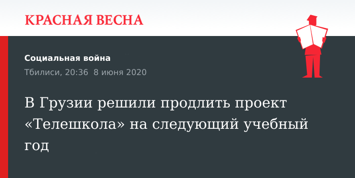 Напомним, 21 марта по всей территории Грузии был объявлен режим чрезвычайного положения из-за пандемии коронавируса. 30 марта на Первом канале был запущен образовательный проект «Телешкола». В эфире транслировались уроки для 1–12 классов, которые вели учителя государственных и частных общеобразовательных школ.