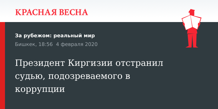 Президент Киргизии Сооронбай Жээнбеков подписал указ на основании предложения дисциплинарной комиссии при совете судей республики. Такое решение связано с возбуждением против судьи уголовного дела по подозрению в коррупции.
