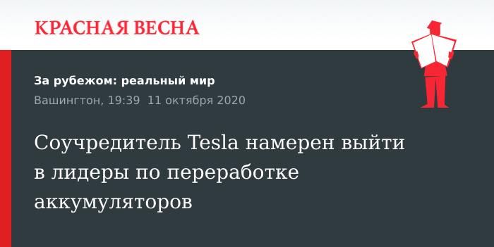 Соучредитель Tesla намерен выйти в лидеры по переработке аккумуляторов