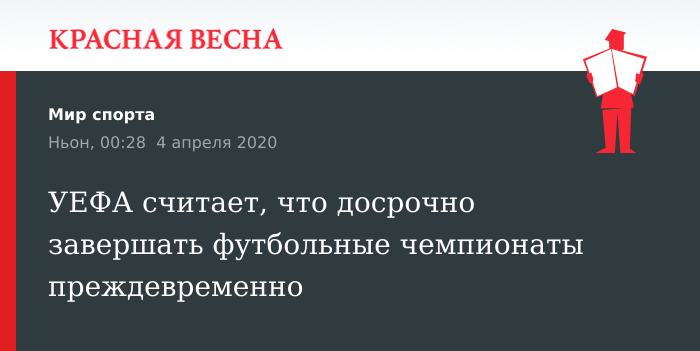 «Мы уверены, что футбол может возобновиться в ближайшие месяцы, <…> и считаем, что любое решение об отказе от внутренних соревнований на данном этапе является преждевременным и неоправданным», — заявили в УЕФА.
