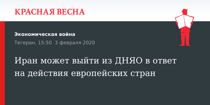 Напомним, что 28 января на рассмотрение иранского парламента был вынесен законопроект о выходе страны из Договора о нераспространении ядерного оружия. Также депутаты должны рассмотреть закон о запрете производства, хранения и применения ядерного оружия.