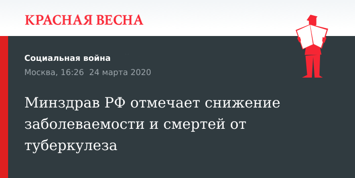 Минздрав РФ отмечает снижение заболеваемости и смертей от туберкулеза