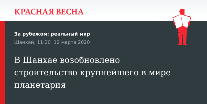 В Шанхае возобновлено строительство крупнейшего в мире планетария, который является отделением Шанхайского музея науки и техники и который будет готов к открытию уже в 2021 году, сообщает 11 марта агентство Синьхуа.