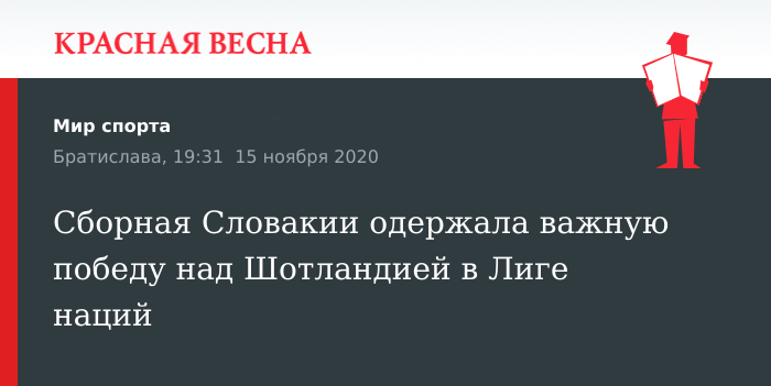Сборная Словакии одержала важную победу над Шотландией в Лиге наций