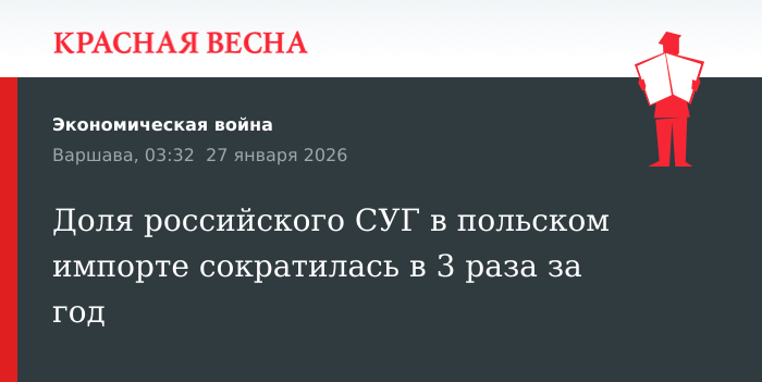Доля российского сжиженного углеводородного газа в импорте Польши сократилась до менее 13%, заявила польская организация сжиженного газа (POGP), 26 января сообщает Business Insider.