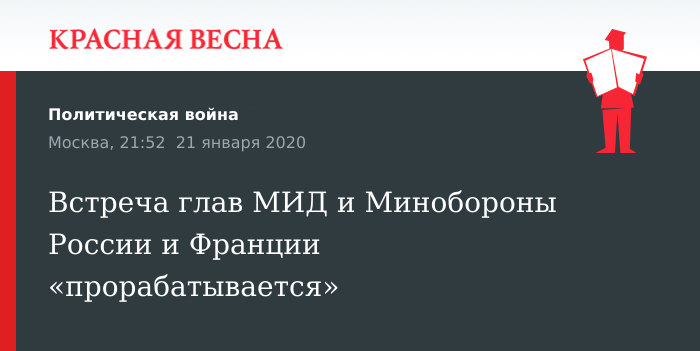 Подготовка к новой встрече между министрами обороны и иностранных дел Франции и России пока не планируется, 21 января сообщил замглавы российского внешнеполитического ведомства Александр Грушко.