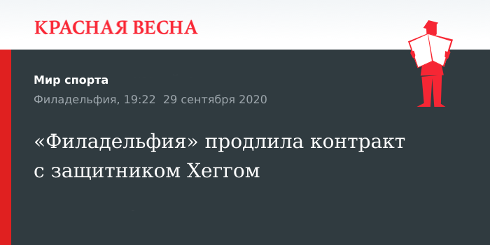 Защитник Роберт Хегг продлил контракт с «Филадельфией Флайерз», 28 сентября сообщает пресс-служба хоккейного клуба.