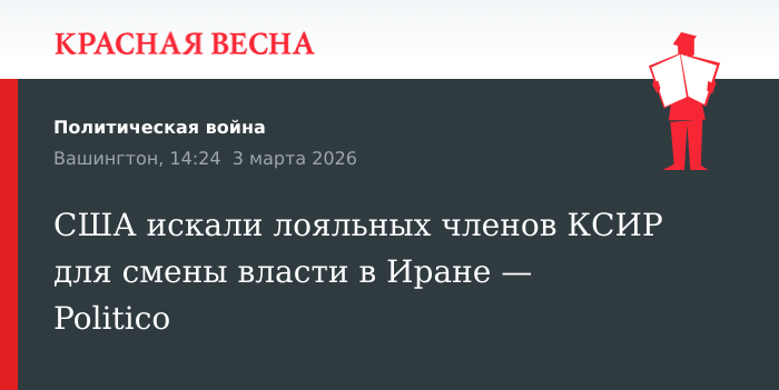 Сотрудники ЦРУ перед началом операции против Ирана пытались найти среди членов Корпуса стражей исламской революции (КСИР) тех, кто был бы готов к сотрудничеству с Вашингтоном для смены власти, 2 марта сообщает издание Politico со ссылкой на источники.