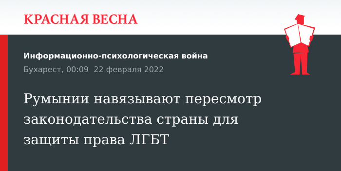 Напомним, в Румынии в целом приветствуются консервативные семейные отношения. Однако за последние два десятилетия Румыния полностью декриминализовала гомосексуализм, ввела и обеспечила соблюдение широкого спектра антидискриминационных законов, уравняла возраст согласия и ввела законы против гомофобии.