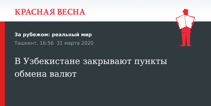 Все кассы и пункты обмена валют в Узбекистане в связи с пандемией коронавируса закрываются, 29 марта сообщает пресс-служба нацбанка Узбекистана.