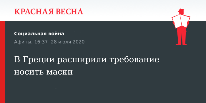 Отметим, требования по ношению масок ужесточены также в ряде других стран, например, в Италии и Германии. Напомним также, власти Греции выразили озабоченность ростом количества случаев заражения коронавирусом в Афинах и Салониках.