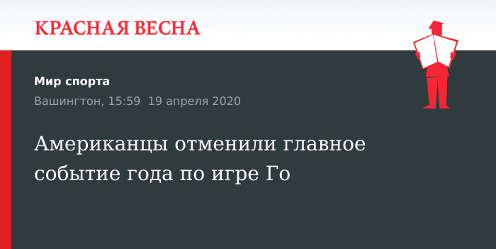 36-й Американский Го конгресс отменен из-за эпидемии коронавируса в США, 18 апреля сообщается на официальном сайте мероприятия.