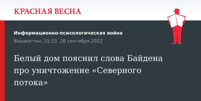 Президент США Джо Байден не обещал уничтожить газопровод «Северный поток», он обещал не допустить ввод в работу, заявили 28 сентября в Белом доме.