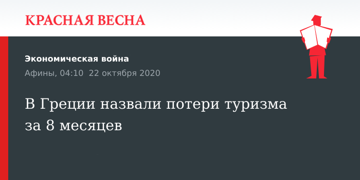 Всего туристическая отрасль Греции потеряла 10,52 млрд евро за восемь месяцев. Прибыль транспортных сервисов в августе упала с 1,8 млрд евро до 80 млн евро.