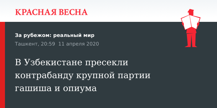 Сообщается, что в городе Алмалыке сотрудники госбезопасности при досмотре 41-летнего подозреваемого нашли 975 грамм гашиша. Обыскав его дом оперативники нашли приготовленные для реализации 2 кг 569 грамм гашиша и 1 кг 997 грамм опиума. Выяснилось, что наркотику ему доставили «окольными путями из Таджикиста», курьер задержан.