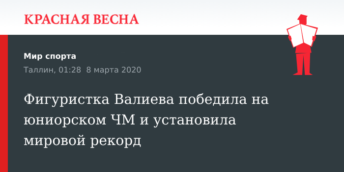 Фигуристка Валиева победила на юниорском ЧМ и установила мировой рекорд