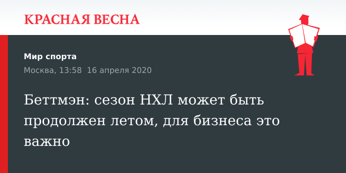 По его мнению, для бизнеса очень важно завершить сезон, но ключевым становится медицинский фактор. «Нам нужно будет максимально проверить всех игроков, ведь они вернутся в Северную Америку со всех частей света. Безопасность будет максимальной», — подчеркнул Беттмэн.