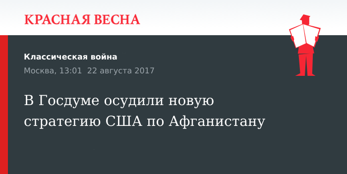 Россия выступает за вывод войск НАТО из Афганистана, на фоне отсутствия успехов США в борьбе с терроризмом в этой стране, так прокомментировал депутат озвученную накануне новую стратегию США по Афганистану.