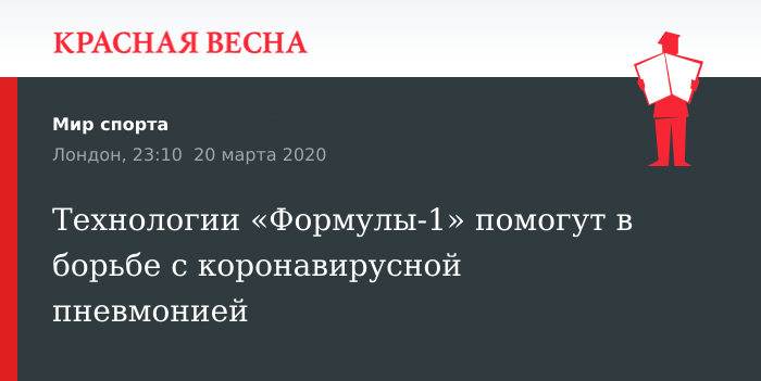 Технологии «Формулы-1» помогут в борьбе с коронавирусной пневмонией