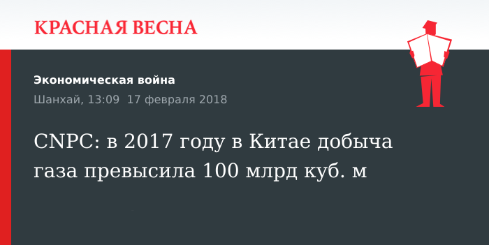 Напомним, согласно данным Государственного статистического управления КНР, в 2017 году добыча газа в Поднебесной увеличилась на 8,5% по сравнению с 2016 годом.