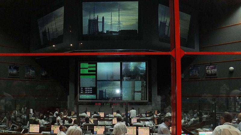 За запуском «Союза» из центра управления полетами следит министр социальных дел и здравоохранения Франции Аньес Бюзен.