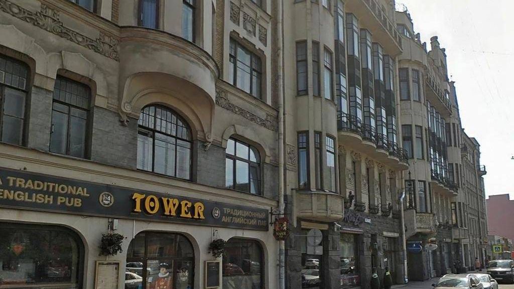 Дом в стиле модерн построен в 1912 году архитектором Карлом Бальди. Зданию присвоен статус выявленного объекта культурного наследия. Сейчас в нем располагаются отель, хостел, почтовое отделение, стоматология, столовая, офис уполномоченного по правам предпринимателей в Санкт-Петербурге, охранное предприятие и ряд других фирм. Местные жители сообщили, что три года назад дом уже горел.