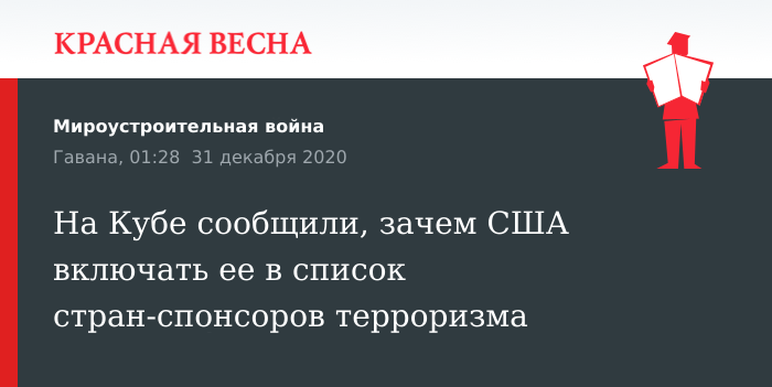 Так глава кубинского МИД отреагировал на заявление The New York Times о том, что госсекретарь Майк Помпео рассмотрит вопрос о включении Кубы в список стран-спонсоров терроризма.