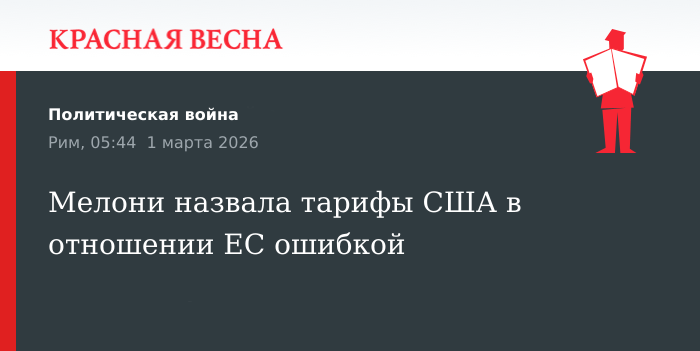 Введение взаимных пошлин между США и Европейским союзом являются ошибочным шагом, заявила премьер-министр Италии Джорджа Мелони 28 февраля, сообщает Bloomberg.
