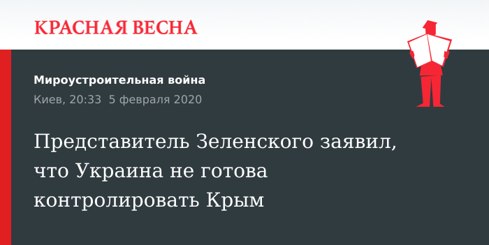 Представитель Зеленского заявил, что Украина не готова контролировать Крым