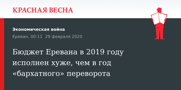 Бюджет Еревана в 2019 году исполнен хуже, чем в год «бархатного» переворота
