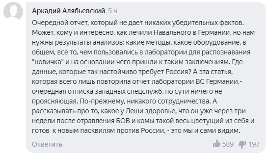 Читайте также: Немецкие врачи опубликовали отчет о лечении Навального