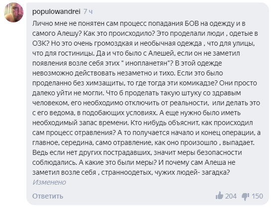 Комментаторы также скептически оценили версию об отравлении оппозиционера боевым отравляющим веществом.