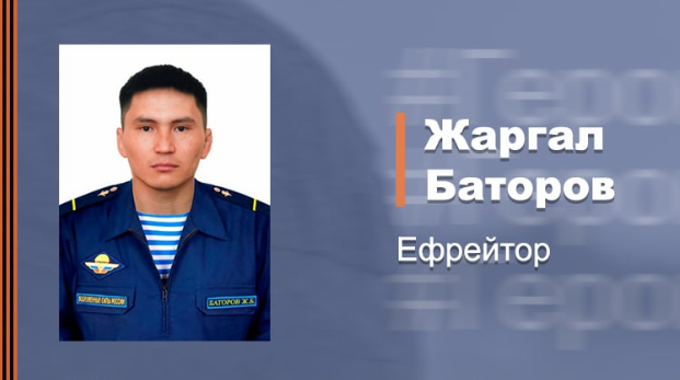 Отвага и решительность командира отделения десантников ефрейтора Жаргала Баторова и его бойцов, уничтоживших в жестоком бою засаду украинских неонацистов, обеспечили безопасность перемещения колонн российских войск в ходе выполнения спецоперации по освобождению Донбасса и денацификации Украины. Об этом 30 августа сообщила пресс-служба Минобороны РФ.
