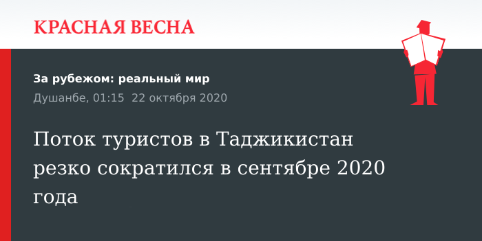 Сентябрь 2020 года отмечен сокращением туристического потока в Таджикистан на 63 процента, 18 октября сообщает пресс–служба Агентства по статистике при президенте республики.
